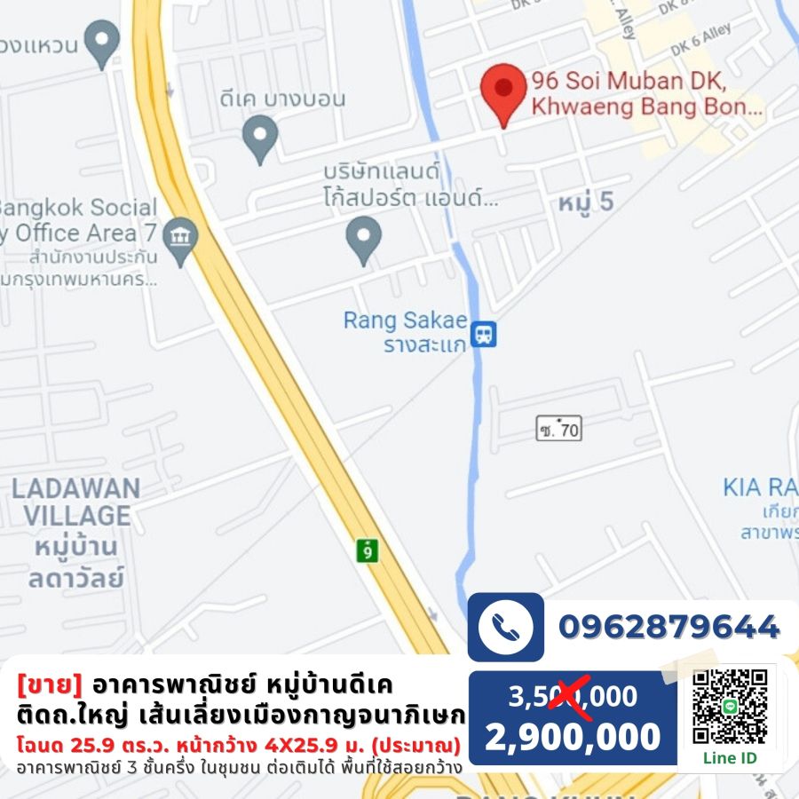 [ขาย] อาคารพาณิชย์ 1 คูหา หมู่บ้านดีเค เส้นวงแหวนกาญจนา ทำเลดี #บางบอน ถนนเส้นหลัก เดินทางสะดวก