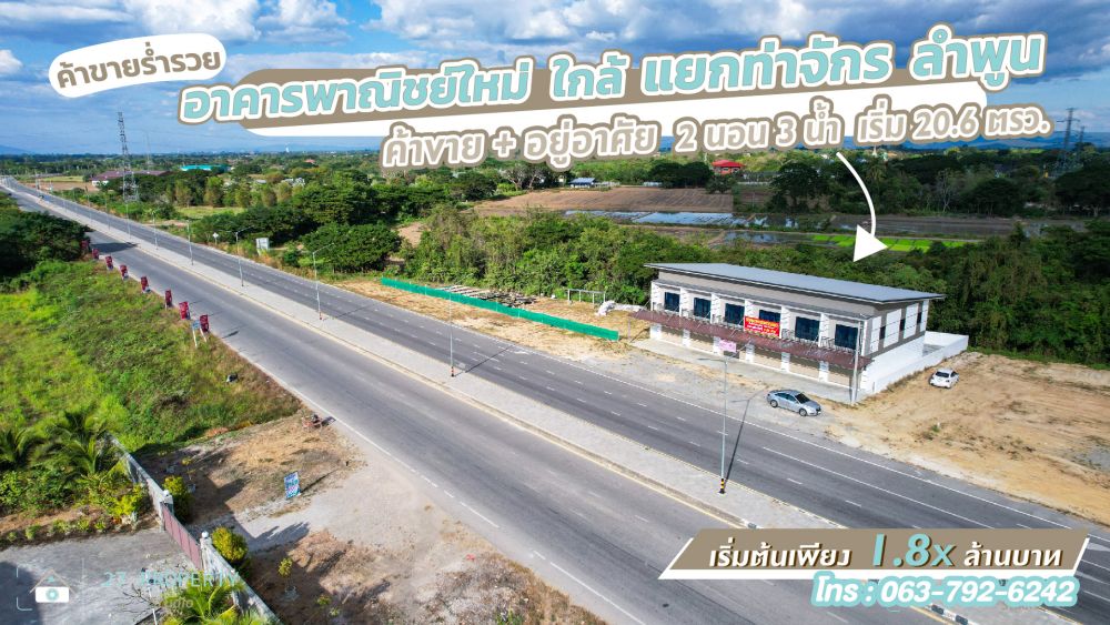 ทำเลค้าขายแห่งใหม่ ! อาคารพานิชย์ 2 ชั้น 2 ห้องนอน 3 ห้องน้ำ 140 ตรม. สร้างใหม่ ติดแยกท่าจักร ลำพูน อยู่อาศัย พร้อมค้าขายร่ำรวย มีเพียง 6 แปลงเท่านั้น ห้ามพลาด