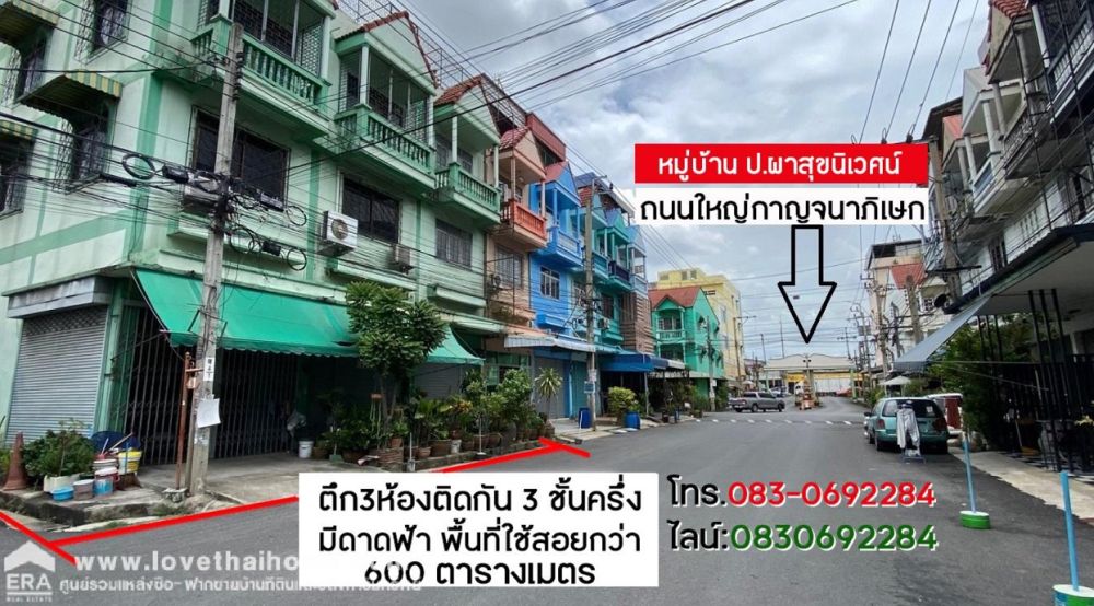 - ตึกแถว 3 ห้องติดกัน พื้นที่ใช้สอย 600 ตารางเมตร