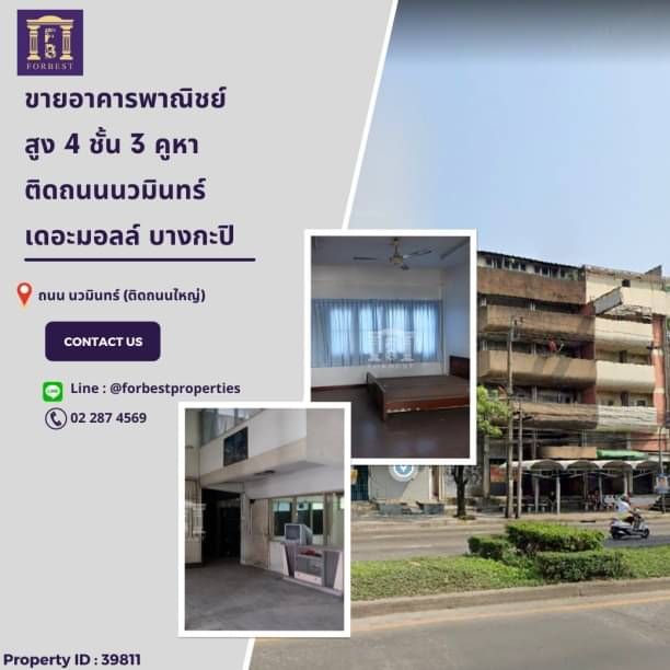 ขายอาคารพาณิชย์ สูง 4 ชั้น 3 คูหา ติดถนนนวมินทร์