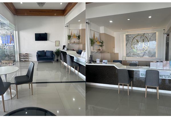 - ชั้น 1 เป็น Clinic มีห้องโถง, ห้องพักพนักงาน, ห้องแพทย์ 1 ห้อง, ห้อง Stock, ห้องครัว, ห้องน้ำ 3 ห้อง, ห้องเก็บของ, ห้อง Treatment 3 ห้อง