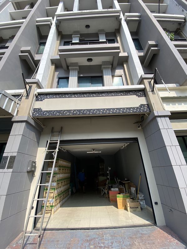 - ชั้น 1 พื้นที่โล่ง กั้นโซนด้านหลัง และห้องน้ำ ประตูทางเข้าเป็นประตูม้วนไฟฟ้าควบคุมด้วยรีโมท สามารถจอดรถข้างในตึกได้เลย