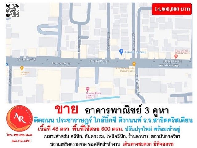 ขาย อาคารพาณิชย์ 3 คูหา ติดถนน ประชาราษฎร์ ใกล้บิ๊กซี ติวานนท์ ร.ร.สาธิตคริสเตียน