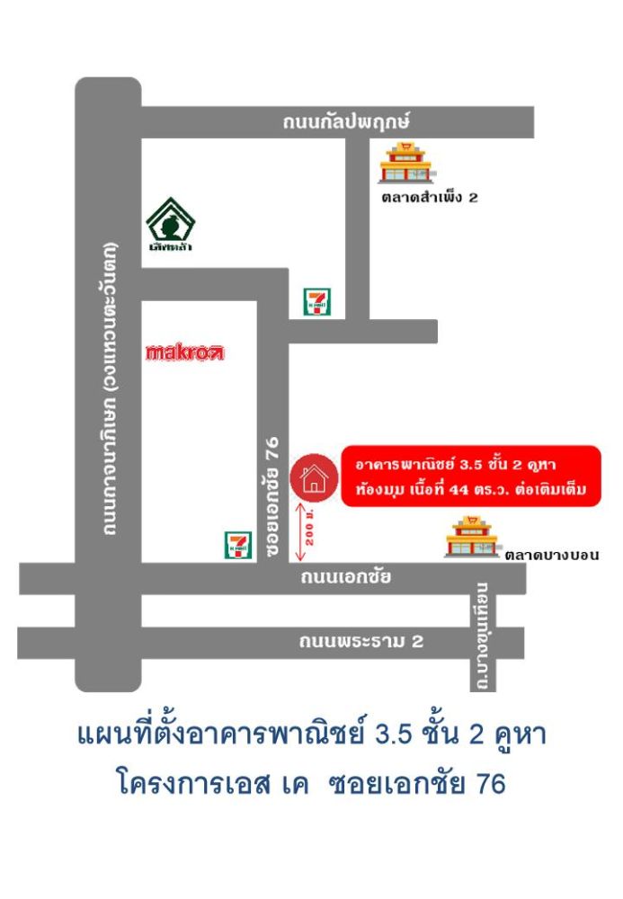 ขายอาคารพาณิชย์ 3.5 ชั้น 2 คูหา เป็นห้องมุม เนื้อที่ 44 ตร.ว. หน้ากว้าง 8 เมตร ลึก 22 เมตร ต่อเติมเต็ม 3 ชั้น ตั้งอยู่ในโครงการหมู่บ้านเอส.เค. ซอยเอกชัย 76