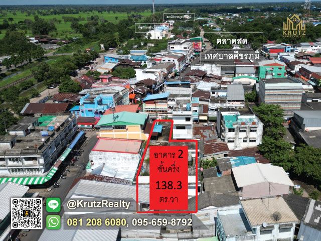 อาคารพาณิชย์ Location ที่ดีที่สุด หายากที่สุดในศีขรภูมิ ที่สุดของทำเลใจกลางเมืองเป็นแหล่งชุมชน ทำเลศูนย์การค้า กลางการค้าและทำธุรกิจ ต่างๆ ผังเมืองสีแดง ทำเลสุดปังและอาคารพาณิชย์ 2 ชั้น 2 ห้องโถงใหญ่ 4 ห้องน้ำ ทำเลดีที่สุด และใกล้โรงเรียน โรงพยาบาล และธนาคารต่างๆ เดินทางสะดวก สามารถนำไปต่อยอดทำร้านค้า ห้างสรรพสินค้า หรือทำเป็นโรงแรมขนาดเล็กได้