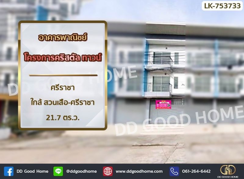 อาคารพาณิชย์ โครงการคริสตัล ทาวน์ ศรีราชา ใกล้ สวนเสือ-ศรีราชา