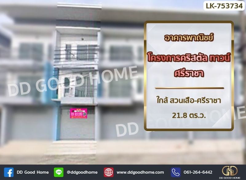 อาคารพานิชย์ โครงการคริสตัล ทาวน์ ศรีราชา ใกล้ สวนเสือ-ศรีราชา