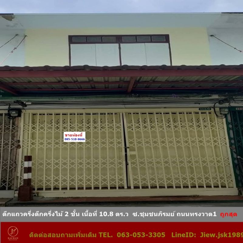 ขายตึกแถวครึ่งตึกครึ่งไม้ 2 ชั้น เนื้อที่ 10.8 ตร.ว ซ.ชุมชนภิรมย์ ถนนทรงวาด1 ถูกสุด
