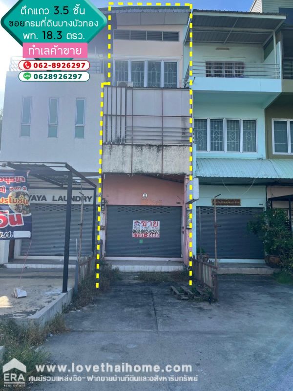 - ขายตึกแถวอาคารพาณิชย์ 3.5 ชั้น ติดถนน ขนาด 18.3 ตรว. ใกล้กรมที่ดินบางบัวทอง ทำเลดี 3 นอน 3 น้ำ 1 จอดรถ