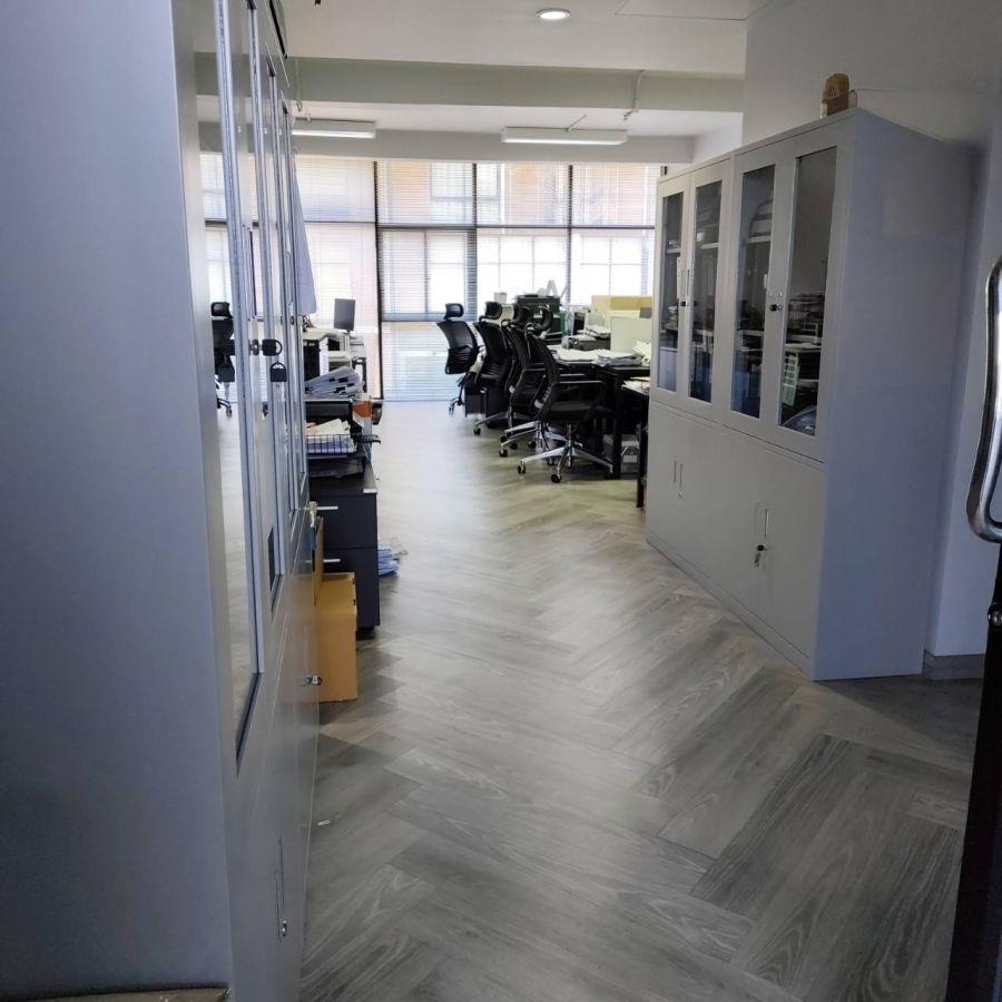 ・ มีโต๊ะทำงาน เก้าอี้ และตู้เก็บเอกสาร พร้อมใช้งาน