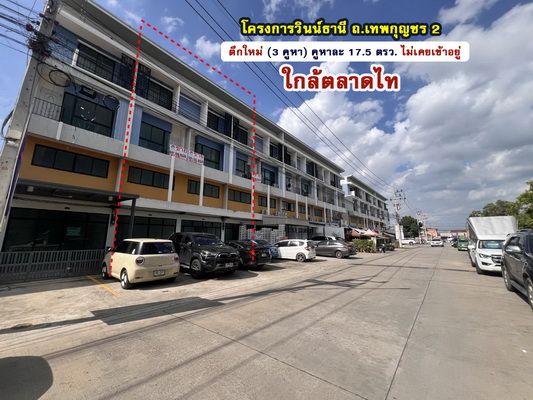 ขายอาคารพาณิชย์ 4 ชั้น (3 คูหา) คูหาละ 17.5 ตรว. โครงการวินน์ธานี (บ้านราชพฤกษ์-ตลาดไท) ถ.เพทกุญชร 2 ตึกใหม่ ไม่เคยเข้าอยู่ มีใกล้ตลาดไท ที่จอดรถหน้าตึก เหมะสำหรับทำการค้า-อยู่อาศัย ถนนกว้าง 16 เมตร