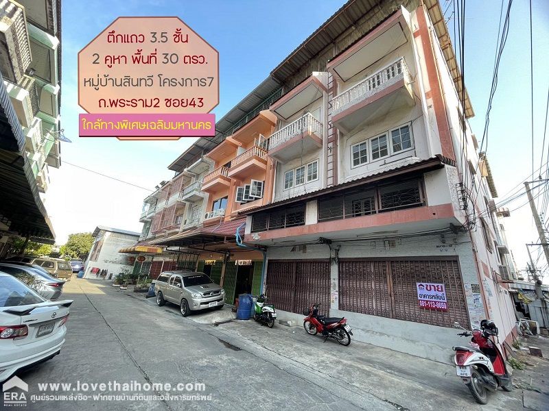 ขายตึกแถว 3.5 ชั้น ถนนพระราม2 ซอย43 หมู่บ้านสินทวี โครงการ7 พื้นที่ 30 ตรว. 2 คูหา ใกล้ทางพิเศษเฉลิมมหานคร