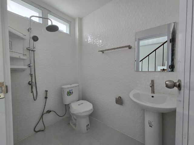 - ห้องน้ำปูกระเบื้องพื้น,ผนังใหม่ทั้งหมด สุขภัณฑ์ในห้องน้ำเป็นของใหม่ทุกจุด