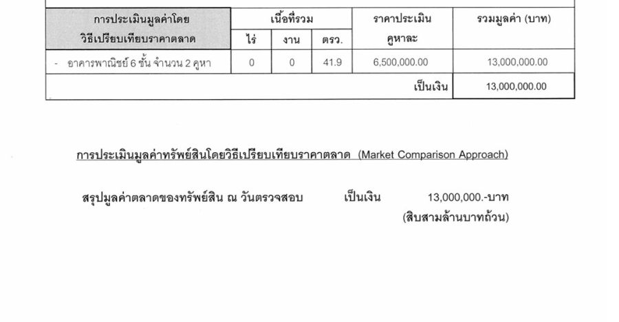 • ราคาประเมินโดยบริษัทประเมิน 13 ล้านบาท