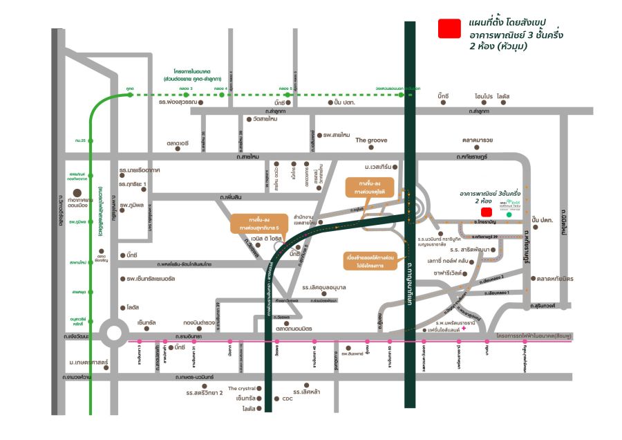 ตั้งอยู่บนถนนไทยรามัญ ใกล้แหล่งชุมชน คอนโด หมู่บ้าน และเส้นทางคมนาคมหลัก