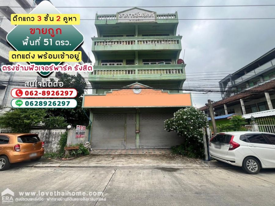 ขายตึกแถว 3 ชั้น ซอยคลองหลวง3 ถนนพหลโยธิน-รังสิต 2 คูหา ขนาด 51 ตรว. ตึกสวย ทำเลทอง ตกแต่งพร้อมเข้าอยู่ ขายเพียงแค่ 6.5 ล้านบาทเท่านั้น ขายถูกสุดในย่านนี้ ด่วน! ราคาดีแบบนี้ไม่มีอีกแล้ว สนใจโทร. 📞062-892-6297