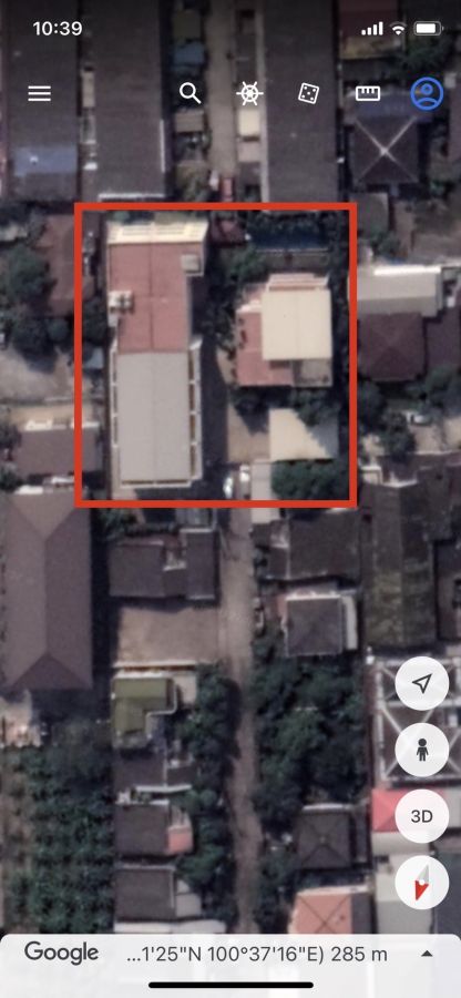 ที่ดิน : 1-1-62 ไร่ (562 ตารางวา) หน้ากว้าง 50 เมตร, ลึก 53 เมตร