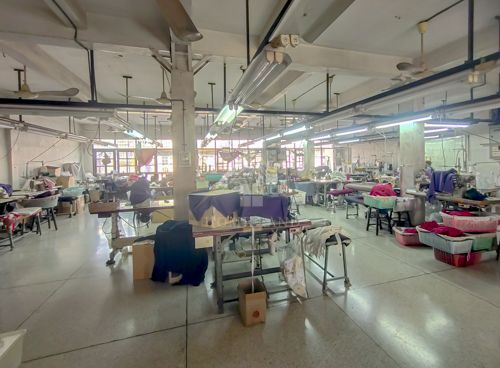 - เดินไฟฟ้าโรงงาน รางไฟยาว มีพัดลมเพดาน