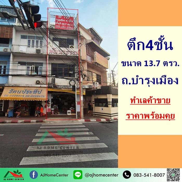 ขายอาคารพาณิชย์4ชั้น 13.7ตรว. ถ.บำรุงเมือง ราคาพร้อมคุย