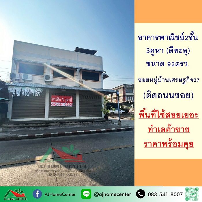 ขายอาคารพาณิชย์2ชั้น 3คูหา ภายในตีทะลุ ขนาด92ตรว. ติดถนนซอยหมู่บ้านเศรษฐกิจ37 ราคาพร้อมคุย