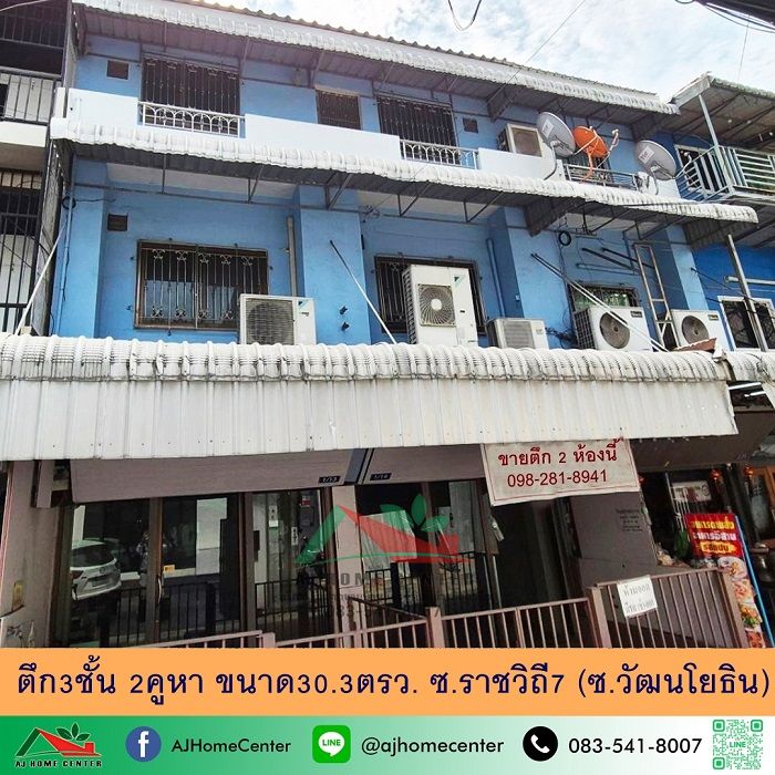 ขายตึก3ชั้น 2คูหา 30.3ตรว. ซ.ราชวิถี7 (ซ.วัฒนโยธิน) สภาพดี ราคาพร้อมคุย