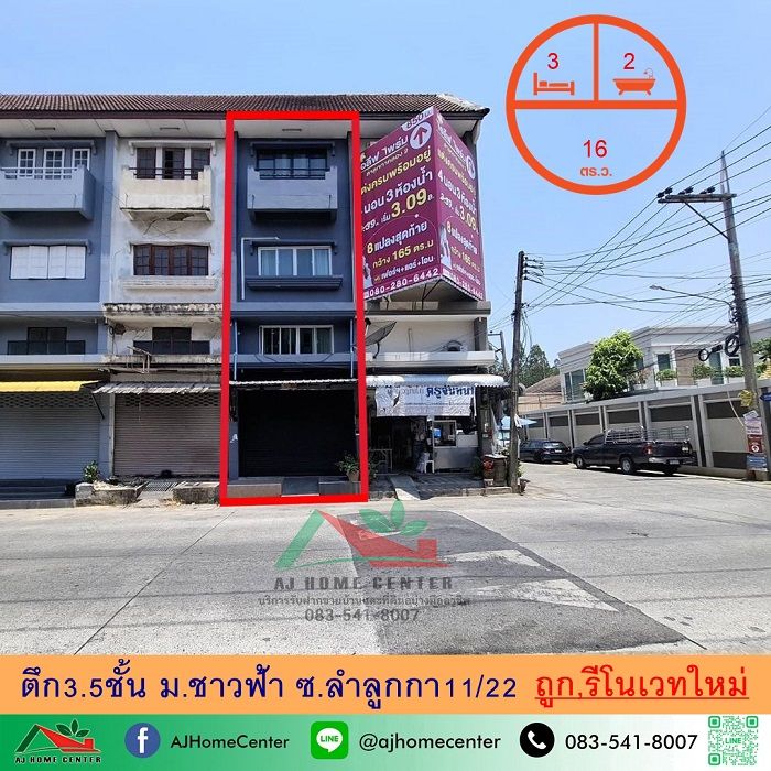 ขายตึก3.5ชั้น 16ตรว. ม.ชาวฟ้า ซ.ลำลูกกา11/22 รีโนเวทใหม่ จัดกู้ฟรี