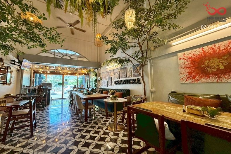 ตกแต่ง : ร้านอาหารสไตล์สวน เครื่องชงกาแฟ/เครื่องPOS/ตู้เย็น/ตู้แช่/ปั๊ม แท๊งน้ำ/โต๊ะ–เก้าอี้(12ชุด)/โซฟา/เคาน์เตอร์ครัว ต่อเติมห้องกระจก