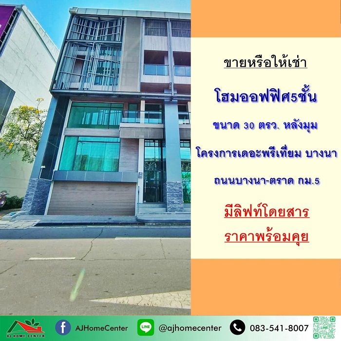 ขายหรือให้เช่า โฮมออฟฟิศ5ชั้น 30ตรว. หลังมุม โครงการเดอะพรีเที่ยม บางนา ถ.บางนา-ตราด กม.5