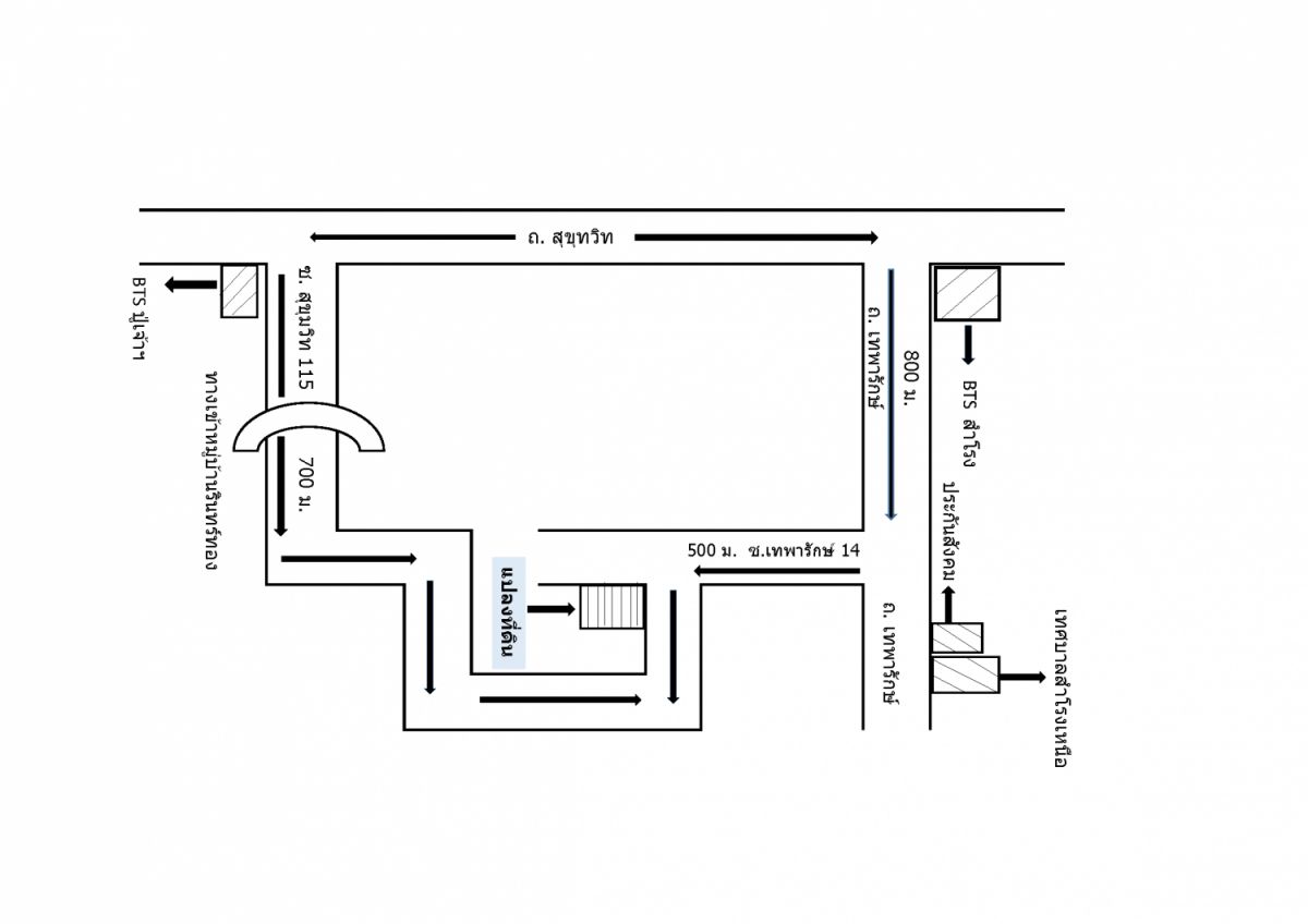 เข้าได้ 2 ทาง จากปากซอยเทพารักษ์ 14 ถึงที่ดิน 500 ม.