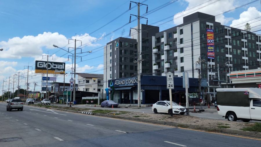- ฝั่งตรงข้ามเป็นห้างโกลบอลเฮ้าส์ และคอนโดหลายตึกมาก ทั้งยังมีตลาด