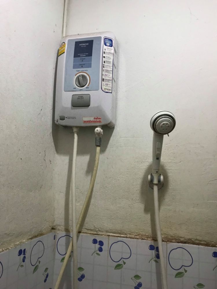 ห้องน้ำ 1ห้อง มีเครื่องทำน้ำอุ่น 1เครื่อง มีอ่างล้างหน้า ชักโครก
