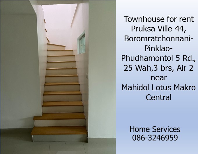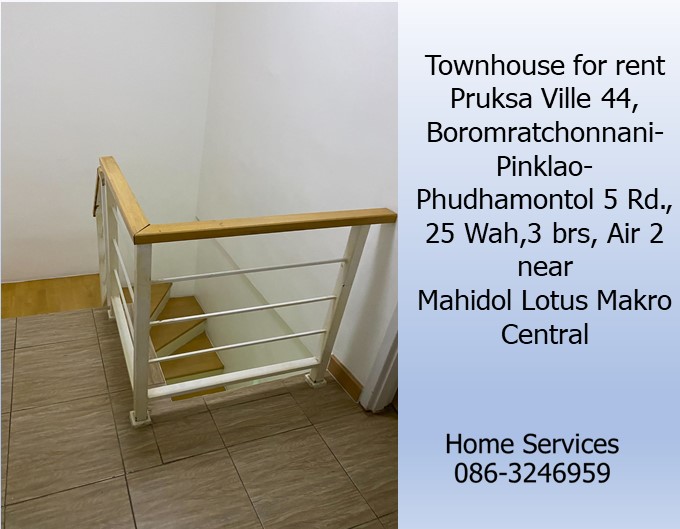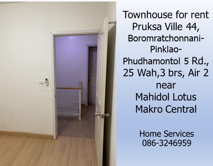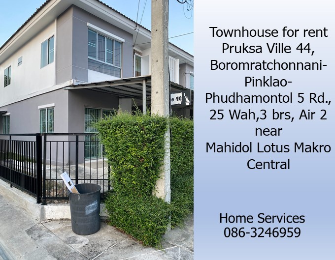 Townhouse for rent Pruksa Ville 44, Boromratchonnani-Pinklao -Phudhamontol 5 Rd., 25 Wah, 3 brs, Air 2 rr. near Mahidol Lotus Makro Central