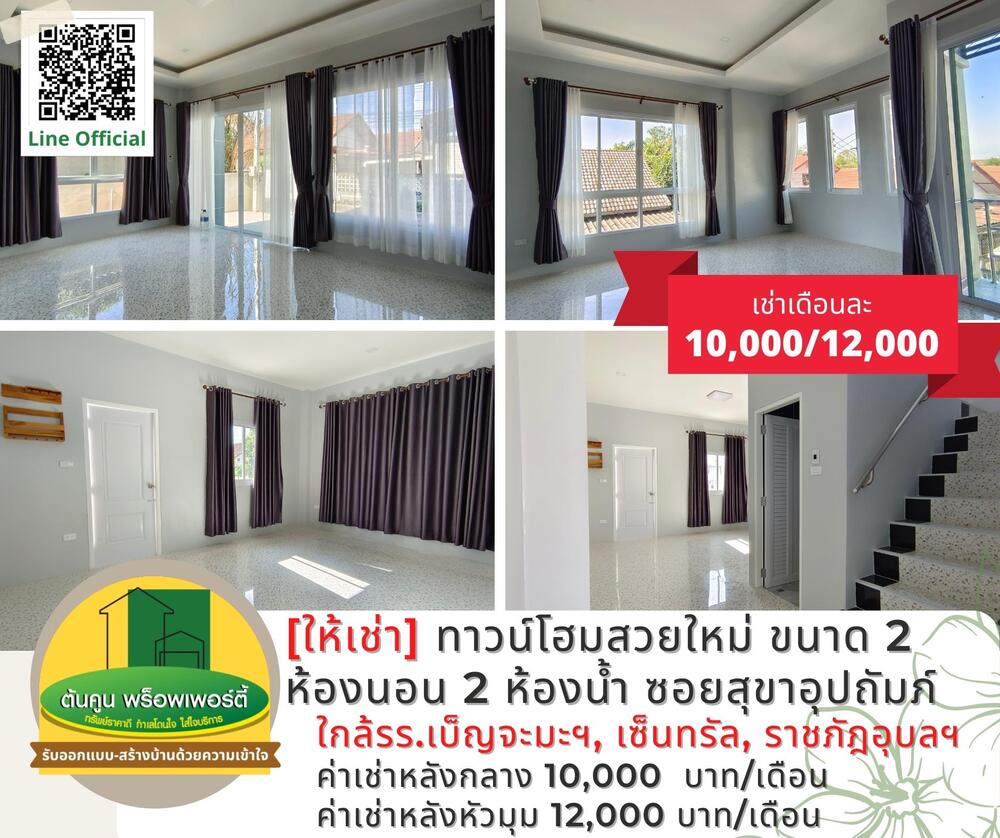 [ให้เช่า] ทาวน์โฮมสวยใหม่ 2 ชั้น 2 ห้องนอน พื้นที่กว้าง ในซอยสุขาอุปถัมภ์ ใกล้รร.เบ็ญจะมะฯ เมืองอุบล