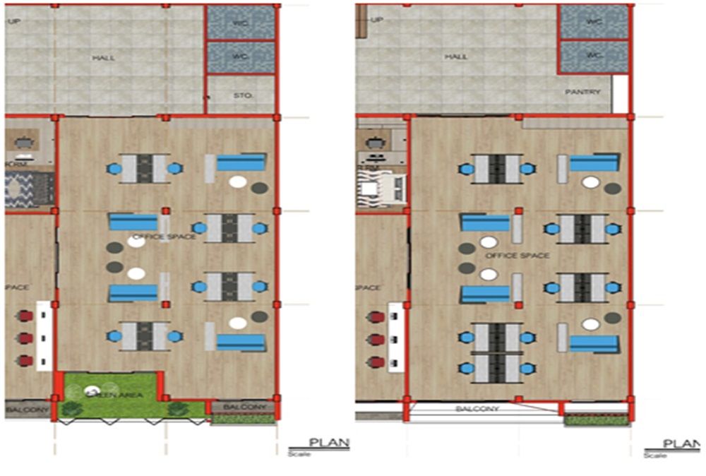 • ชั้น 1 จอดรถ 6 คัน ห้องรับรอง 2 ห้องทำงาน 2 ห้องน้ำ 1