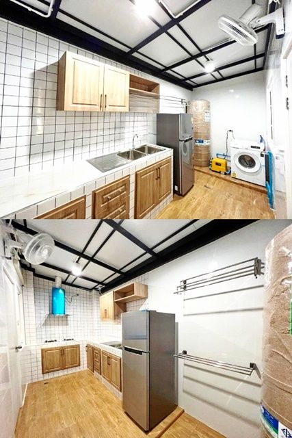 Sukhumvit 113 Lasalle for rent 2-story townhome MRT Samrong 1km. fully furnished 17sq.wa. 118sq.m. 25,898B-M busy very good location 2bed 2bath 1parking 3A/C Imperial World Samrong can enter and exit in many ways.