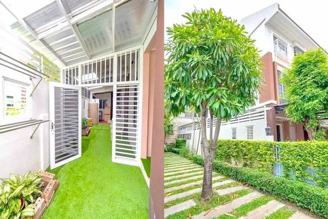 อ่อนนุช30-36 MRT ศรีนุช 2กม. ให้เช่าทาวน์เฮาส์ 3 ชั้น หันทิศใต้ แปลงมุม 32ตรว. 170ตรม. 37,998B-M ลมพัดเย็นสบาย ทำเลดี 4นอน 5น้ำ 3จอดรถ 5แอร์ เดินทางสะดวก ธัญญะ พาร์ค