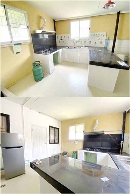 - เค้าเตอร์ครัวครบชุด (ถัง/เตาแก๊ส ,ฮู้ดดูดควัน) + บิ้วอินเค้าเตอร์บาร์ (รายนี้เฉพาะบ้านหลังริม)