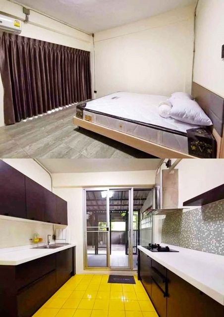 MRT WatSamianNari 1.7km. The Mall Ngamwongwan 700m. fully fur 2-3bed 2bath 3-storey townhome corner Newly renovated house 26 sq.w.302 sq.m. Dhurakij Pundit University 2.2km.For rent 16,998 b-m resort atmosphere garden at the back suitable for office online sales and residential community area