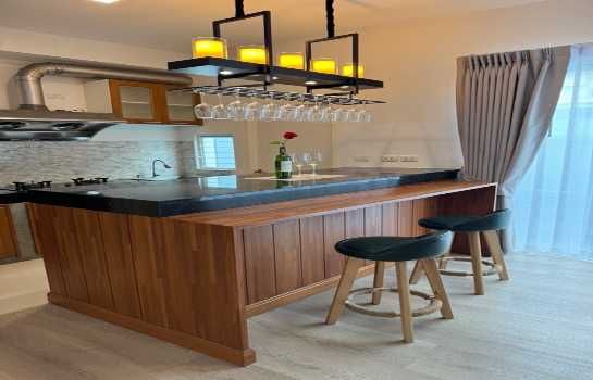 - เคาน์เตอร์ครัว + เคาน์เตอร์บาร์ - ตู้เย็น 13.9 คิ -ไมโคเวฟ - เตาแก๊สแบบฝัง+hoodดูดควัน