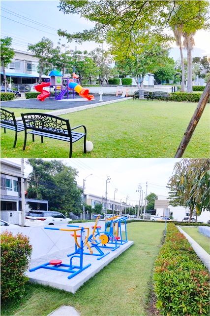 ส่วนกลางหมู่บ้าน : สระว่ายน้ำ เครื่องออกกำลังกาย สวน รปภ. กล้องcctv