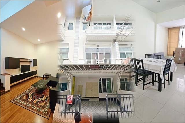 The Cheapest Rama9 Prawet 3-storey townhouse Stamford Inter University 100 m. furnished complete electrical appliances 3 bed 3 bath St. George International School 1.4 km. 23 sq.wa.276 sq.m.good location Phatthanakan Market 1.1 km. for rent 24,999 B-M Airport Link Hua Mak 1.9 km. convenient transportation