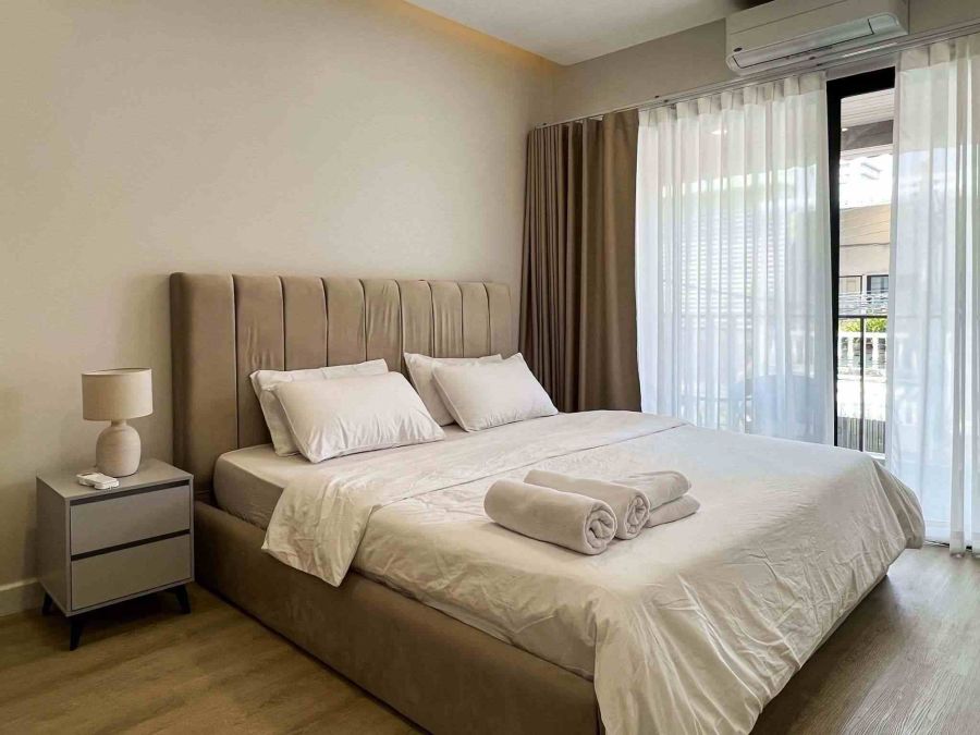 - ตกแต่งสไตล์โมเดิร์น บรรยากาศอบอุ่น มีเตียงนอน ตู้เสื้อผ้า พร้อมลากกระเป๋าเข้าอยู่