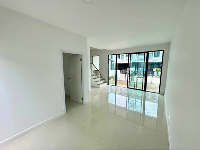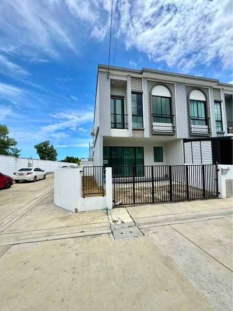 Sarasas Witaed Suksa School 900 m.Very big like a mansion. 2-story corner townhouse for rent PrachaUthit90 Market 1.8km. 26sq.wa. 206sq.m. QUEENS model 4 bed 2 bath Good location on the main road in a community area suitable for home offices or residential use. 12,998B-M. Easy access ThungKhru Flats intersection.