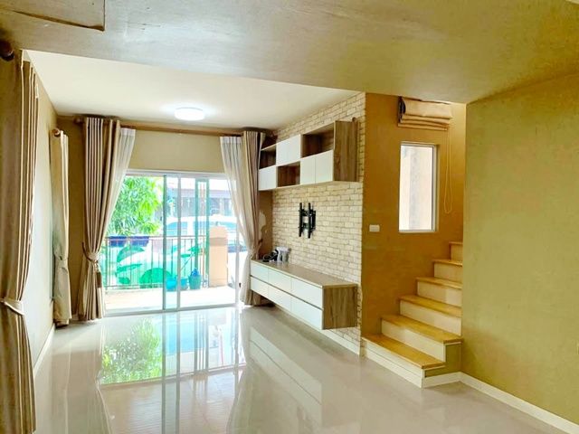 PhraNgern Market is 1.7 km. Prime Soi Kantana-Wongwaen MRT Talat Bang Yai. 3.9 km. 2-story townhouse for rent 25 sq.wa. 200 sq.m. Great location 400 m. from Bang Yai Hospital. 3 bed 2 bath away. Easy access to food and transportation. Suitable for home offices and residential use. 11,998 B-M. BangKhuWiang Intersection Kanchanaphisek Road. Pruksa