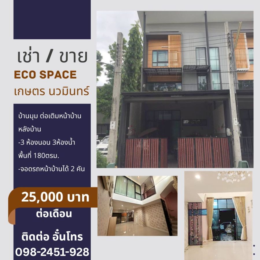 เช่า / ขาย Eco Space เกษตร นวมินทร์ บ้านมุม ต่อเติมหน้าบ้าน หลังบ้าน