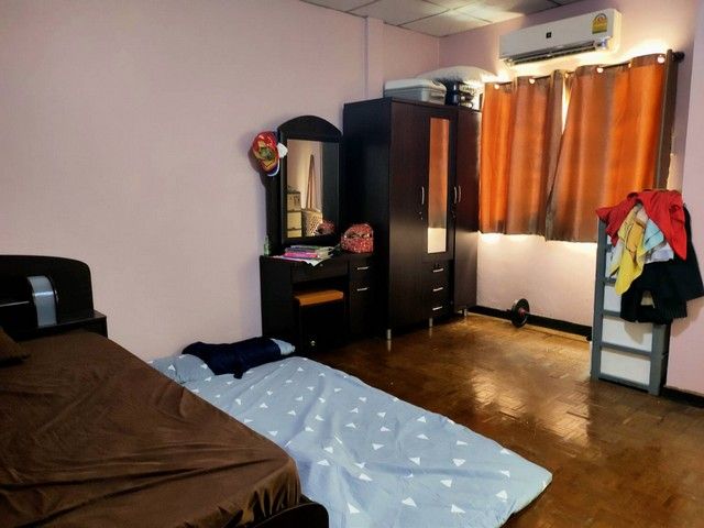 ลักษณะบ้าน : ทาวน์เฮ้าส์ 2 ชั้น มีระเบียง ต่อเติมห้องครัวด้านหลัง ติดตั้งมุ้งลวด