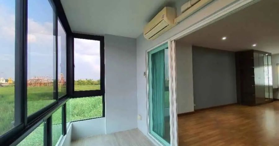 ชั้น 3 เป็นห้องนอน Master มีเตียง 6 ฟุต ตู้ เสื้อผ้า โต๊ะแป้ง โต๊ะทำงาน และระเบียงกั้น ห้องกระจกเพิ่มพื้นที่ใช้สอย