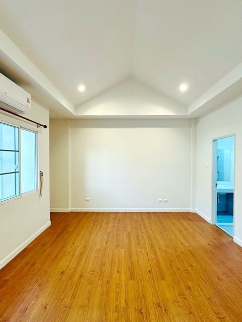 ภายในมีแอร์ทุกห้อง ห้องนอนเพดานสูง โปร่งโล่ง หลังบ้านไม่ติดใคร