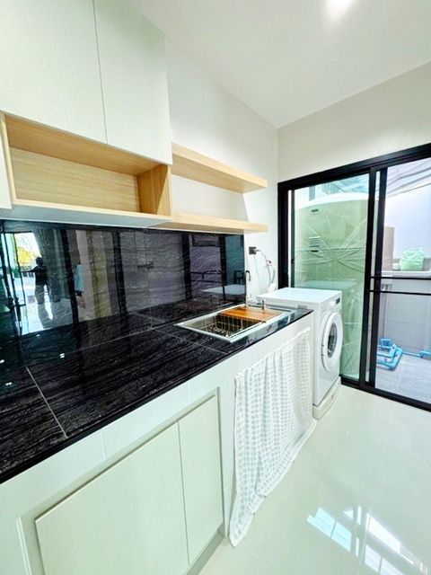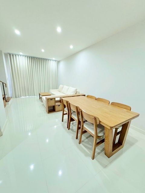 Baan Klang Muang project Rama 9 Bangkok Kreetha Brighton Inter Sch Bangkok 900m. 3-story townhome 3 bed 3 bath near Tops Daily Usable area 18.5 sq.wa. 220 sq.m. 43,998B-M new fully furnished house prime location near ARL Ban Thap Chang 3.5 km. and major roads of East Bangkok convenient for living near international schools shopping areas and the airport.