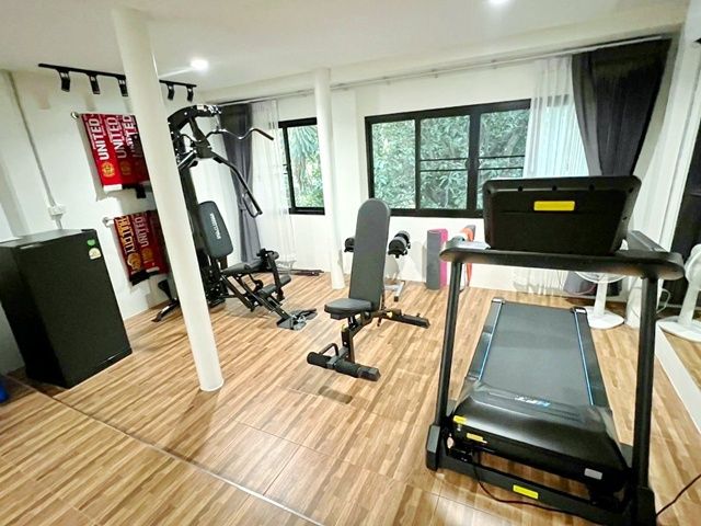 จอดรถ 2 คัน ห้องฟิตเนสส่วนตัวพร้อมลู่วิ่ง และอุปกรณ์ ห้องดูหนัง ห้องอ่านหนังสือ ระบบกรองน้ำดื่ม และน้ำใช้ทั้งหลัง